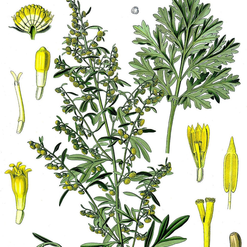 Latin: Artemisia absinthium, Part: Flowering Tops, Origin: USA, Method: Steam distilled, Class: Ketone